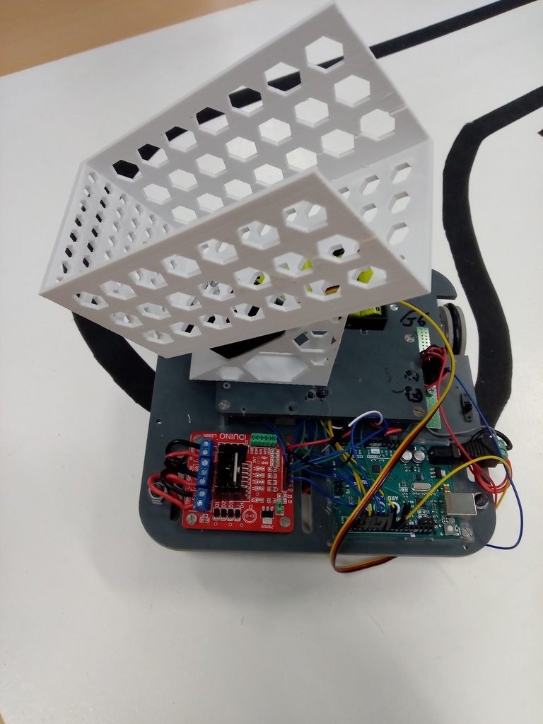 Être autonome en énergie et non radiocommandé. Suivre la ligne noire, s'arrêter devant un panier pour y déposer la balle, ou la lancer dedans. Continuer jusqu’à la zone d’arrivée.