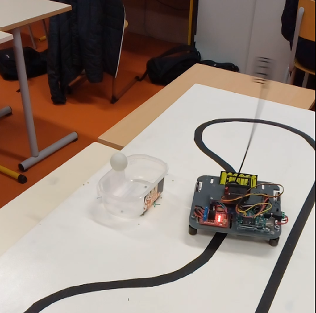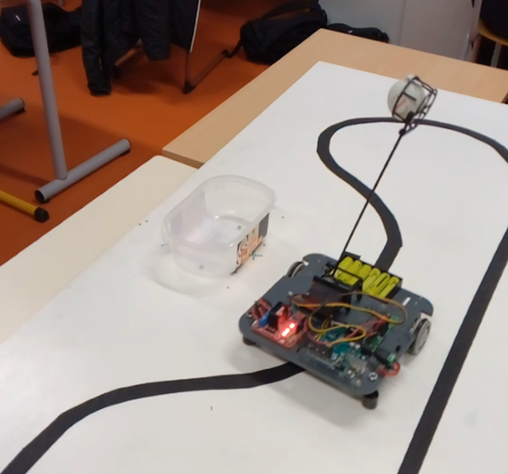 Au début de l'année, les élèves ont été formés à la conception mécanique en 3D avec un projet de support de téléphone puis à la programmation en C sur une carte à microcontrôleur.